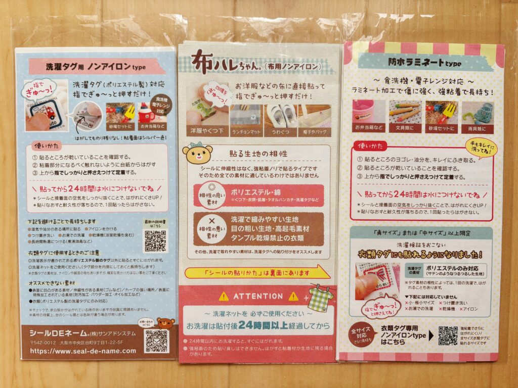 洋服・靴下に使うシールは